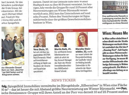 第9名:"最强房屋中介/买房或租房 "第11名:"最强维也纳公寓中介/自住公寓"。 第12名:"奥地利最强的工业/商业经纪人"。 第13名:"维也纳/住宅整体实力最强的住宅经纪公司"。 第16名:"最强维也纳住宅中介/出租公寓"。 祝贺奥地利皇家队--我们走在正确的道路上! Link: https://www.immobilien-magazin.at/downloads/immobilien_magazin_2016_05_maklerranking.pdf |